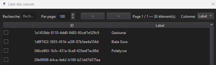 Il est possible de lister les noeuds, relations ainsi que les différents types, mais également les médias disponibles: